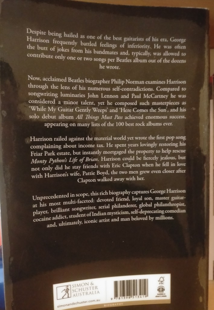I love The Beatles, and their music. Always have, and always will, like many fans. Thus it come as a surprise to some readers that my favourite Beatle has always been ‘the quiet one’ – George Harrison – due partly to his fascination with Indian music and mysticism, but mainly because of his magnum opus, All Things Must Pass, which is one of my favourite albums of all time. Some of my favourite songs of his include Isn’t it a Pity, While My Guitar Gently Weeps and Cloud Nine. It’s with this interest and love that I recently picked up Philip Norman’s new biography, titled George Harrison – The Reluctant Beatle, published by Simon & Schuster in 2023.